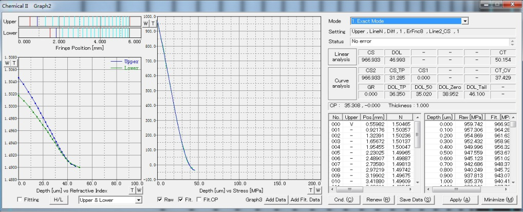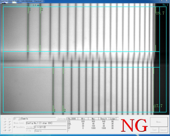 5.表面應(yīng)力(CS)值、應(yīng)力層深度(DOL)值、中心應(yīng)力(CT)值可以直接測(cè)量并顯示;