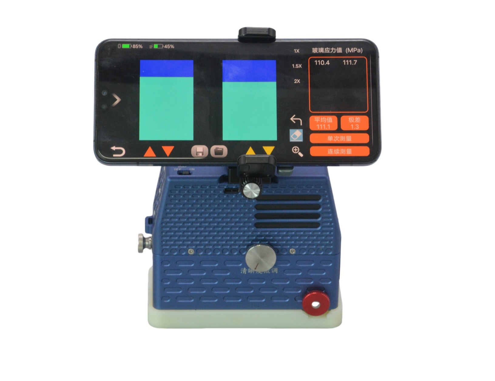 輕巧實(shí)用:儀器僅重 640g,體積小巧,將儀器置于浮法玻璃的浸錫面的表面上,調(diào)節(jié)圖像,即可測量。